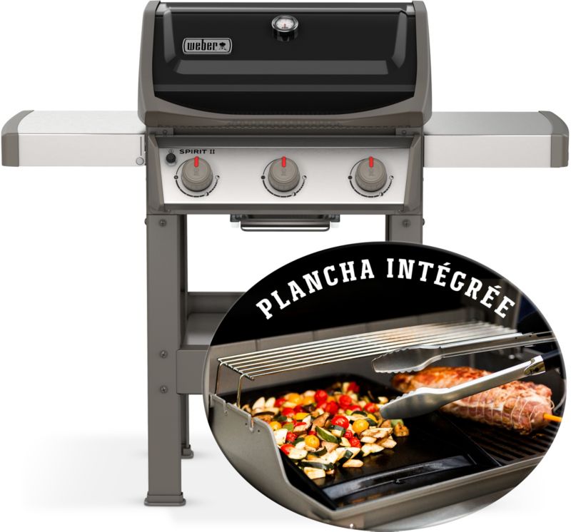 Barbecue gaz WEBER Spirit II E-310 noir grill e et plancha 3 bruleurs sur chariot, 60x44 cm (réf : 1120884)