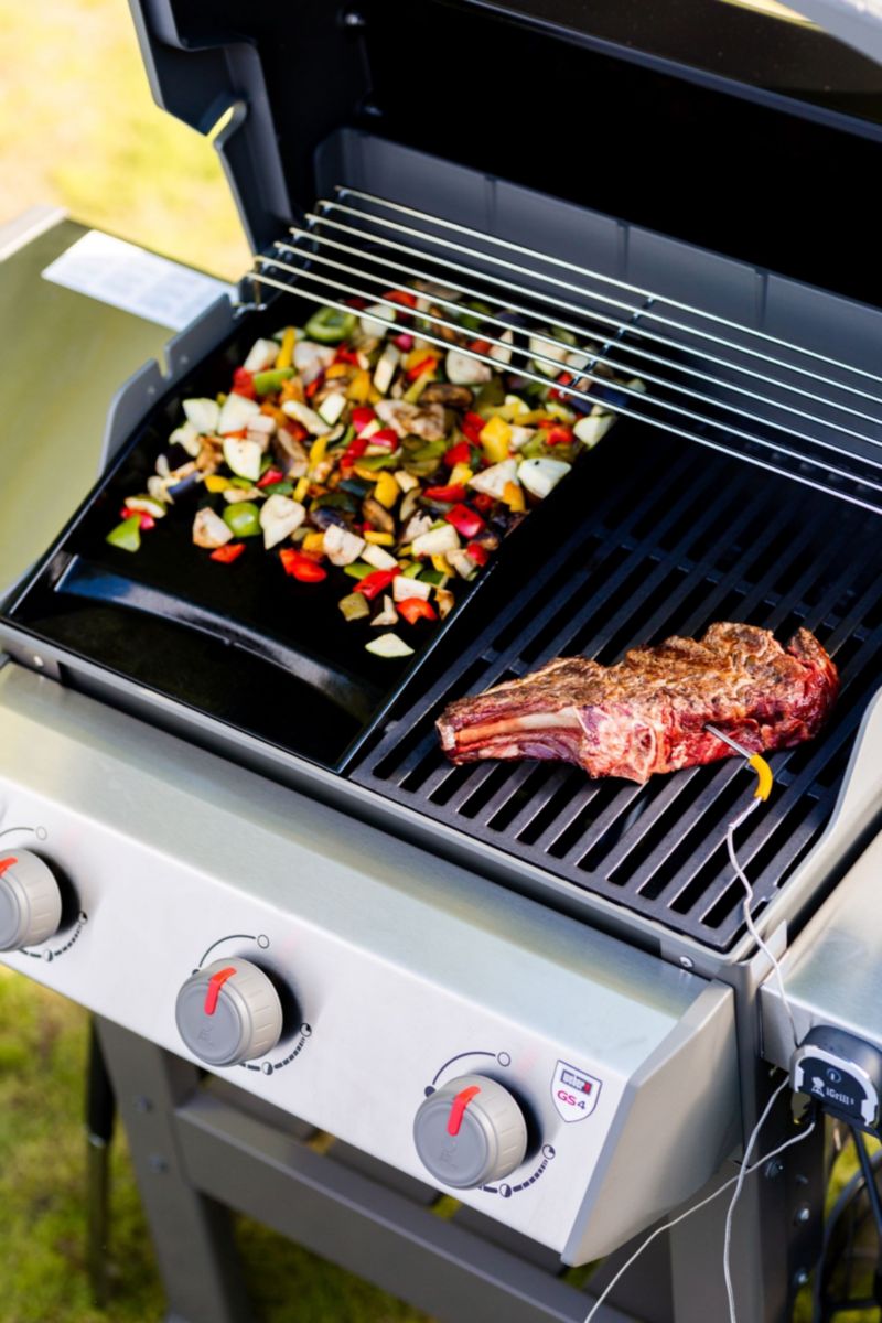 Le + : Confort du couvercle, récupération des graisses et polyvalence de la surface de cuisson ½ grille ½ Plancha