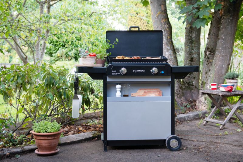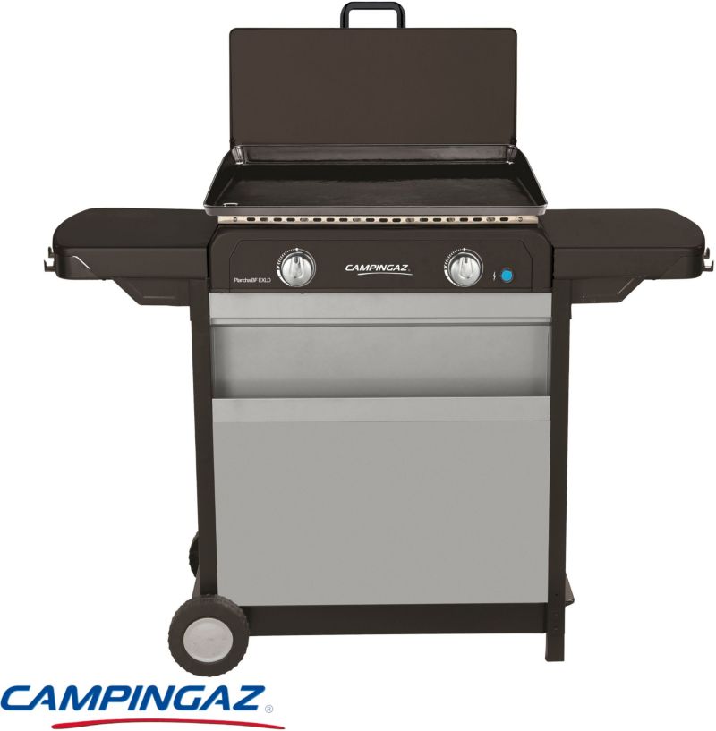 Plancha gaz CAMPINGAZ BLUE FLAME EXLD 2 brûleurs sur chariot, 60x40 cm (réf : 1139941)