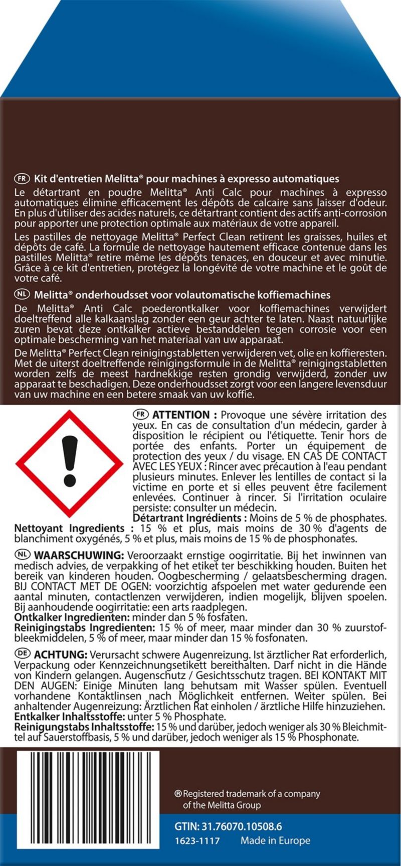 Produit de Nettoyage MELITTA Espresso Kit 4 détartrants + 4 nettoyants (réf : 819693)