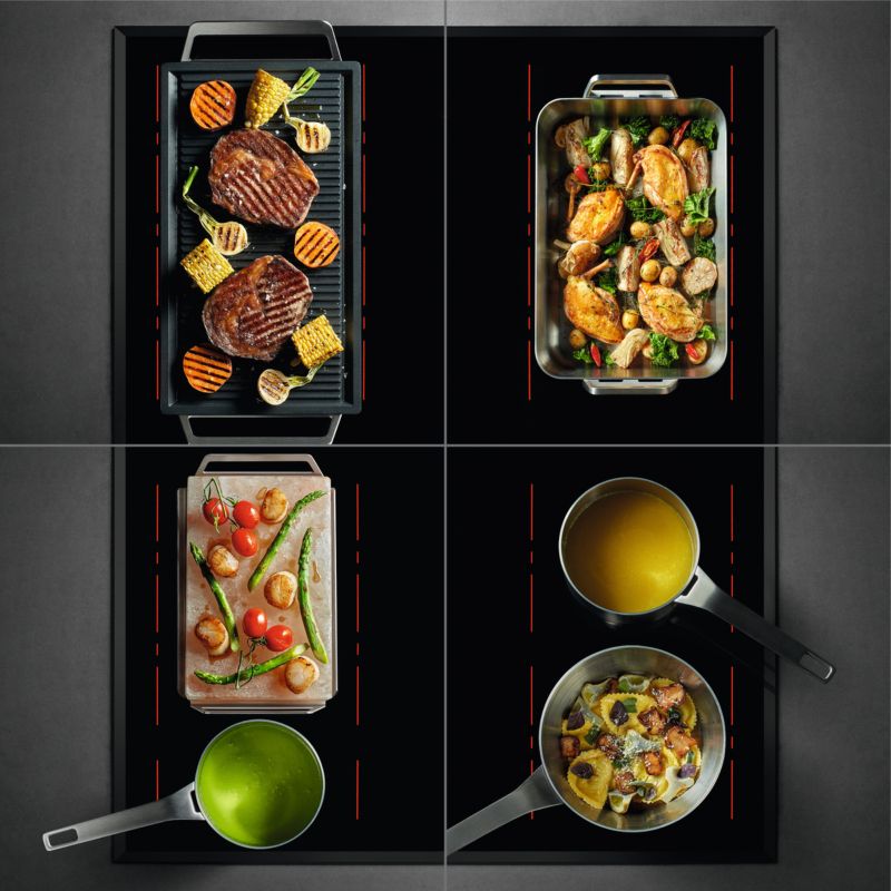 - Foyer modulable : bridge, permet de réunir 2 zones de cuisson en 1 seule de grande surface, cette fonction est idéale pour une cocotte ovale.