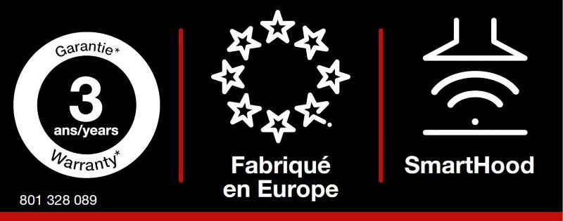 - Interconnexion table/hotte : Oui. Une fois la table de cuisson active, l'éclairage de la hotte compatible s'enclenche et règle la puissance d'aspiration en automatique.