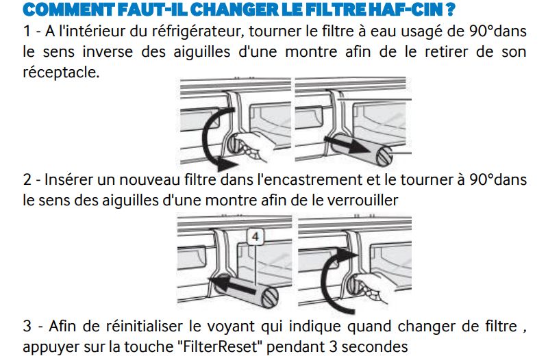- Référence du filtre / de la cartouche : HAF-CIN/EXP