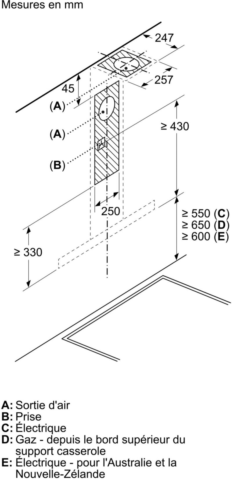 - Bien la placer : la distance minimale entre la plaque de cuisson et la hotte est de 55 cm pour l'électrique et 65 cm pour le gaz. Cependant, ne dépassez pas 80 cm pour garantir une aspiration efficace des vapeurs de cuisson.