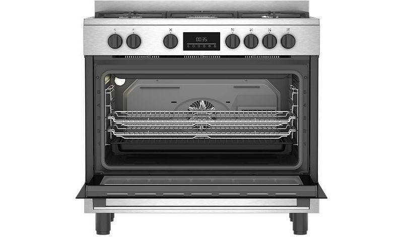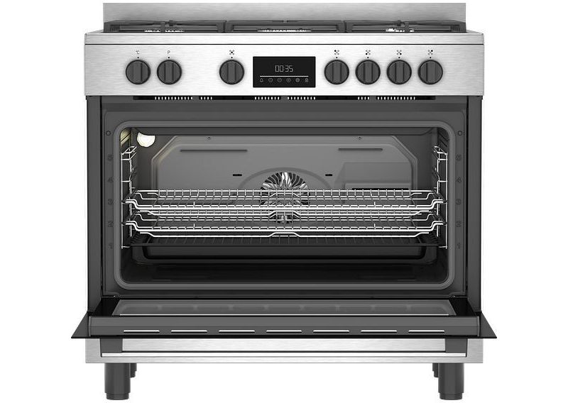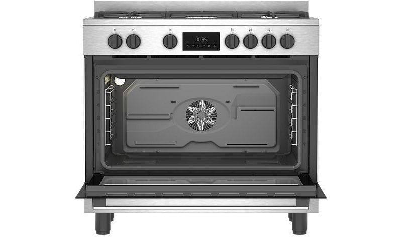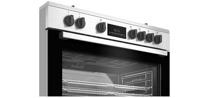- Mode de cuisson : chaleur tournante brassée, le four est équipé de 2 résistances, une en bas (sole), une en haut (voûte) et d'une hélice placée au fond de la cavité qui permet de brasser l'air, pour une cuisson rapide et une repartition homogène de la chaleur.