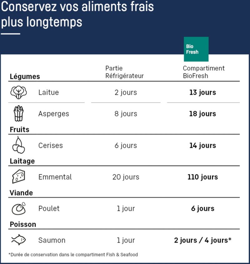- Zone fraîcheur pour les viandes et poissons : oui, une température constante proche de 0°C et un contrôle de l'humidité permettent une conservation parfaite des viandes et poissons