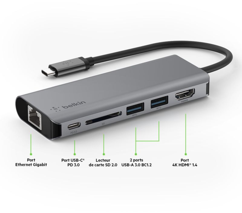 Hub USB C BELKIN USB-C /multiports 6 en 1 (réf : 1168929)
