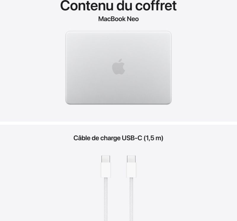 SSD 512 Go : Ordinateur Apple MACBOOK Neo 13' A18 Pro CPU6 GPU5 8Go 512Go Argent