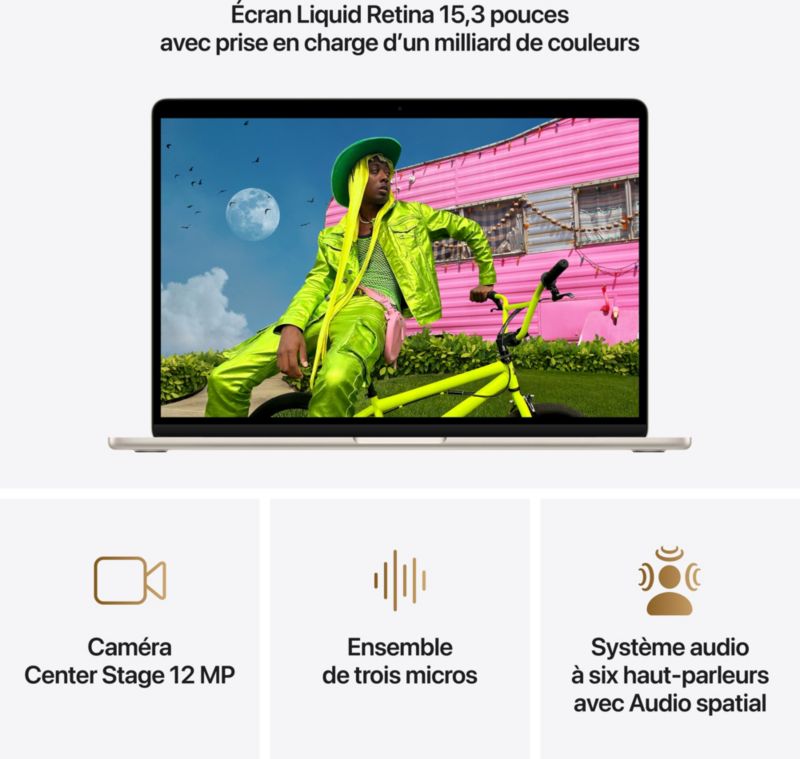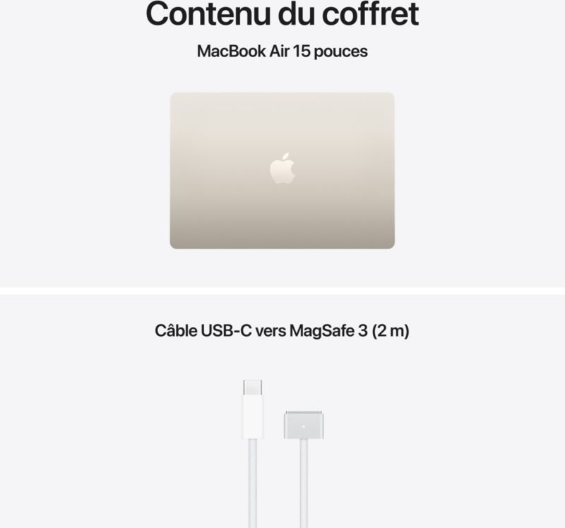Ordinateur Apple MACBOOK Air 15' M5 16Go CPU10 GPU10 512Go Lumière stellaire (réf : 1235612)