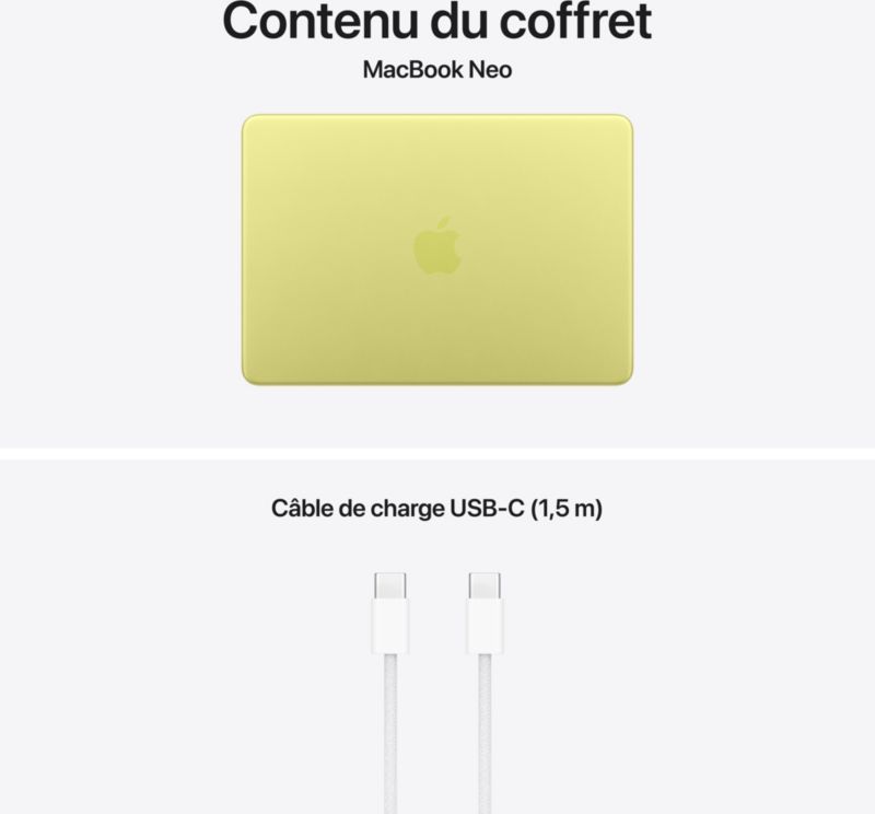 SSD 512 Go : Ordinateur Apple MACBOOK Neo 13' A18 Pro CPU6 GPU5 8Go 512Go Jaune agrume