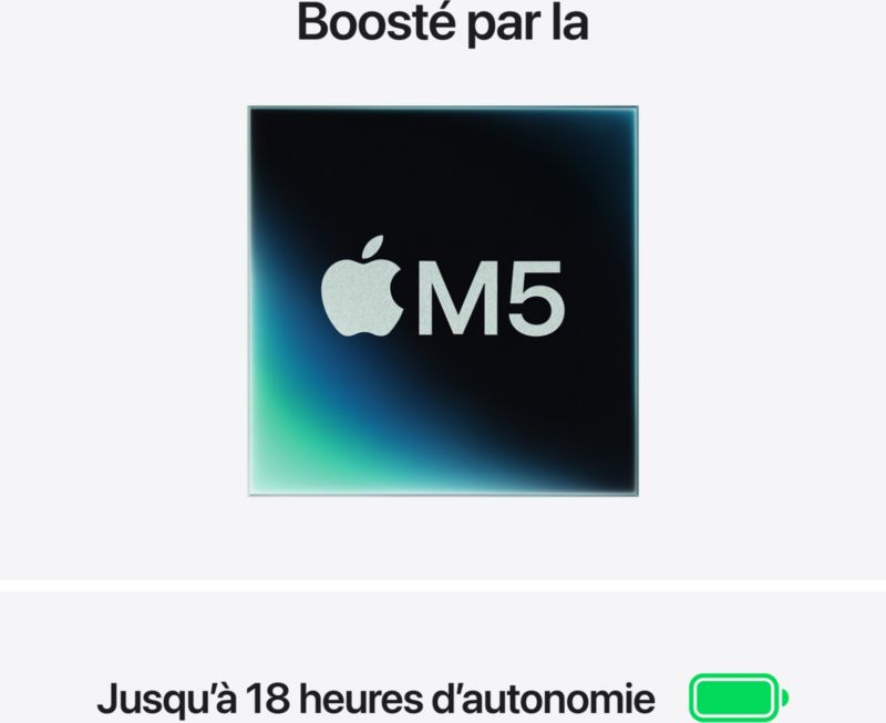 - Avantages du processeur : La puce M5 rend l'IA plus rapide et fluide grâce à la nouvelle technologie Neural Accelerators