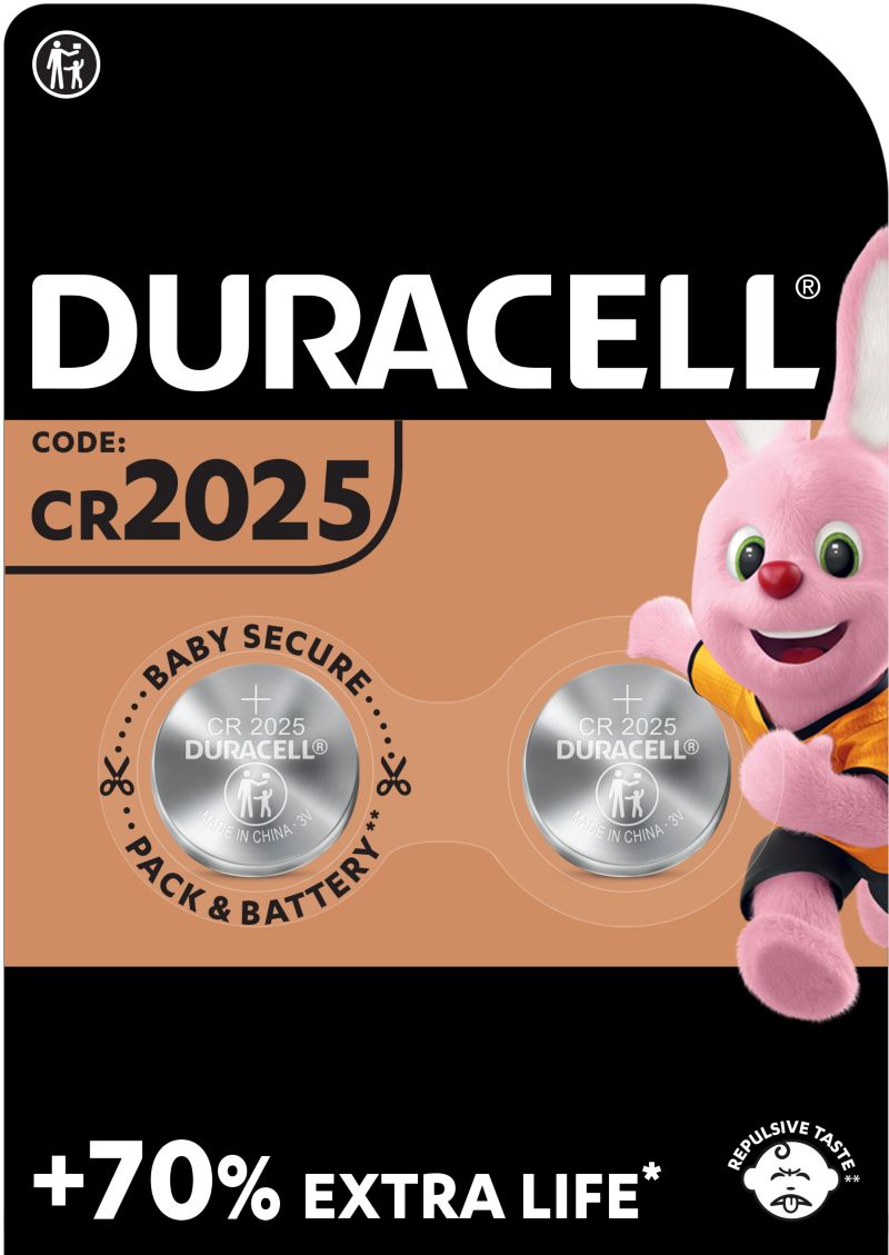 Pile DURACELL Lithium DL/CR 2025, pack de 2 unités (réf : 855849)