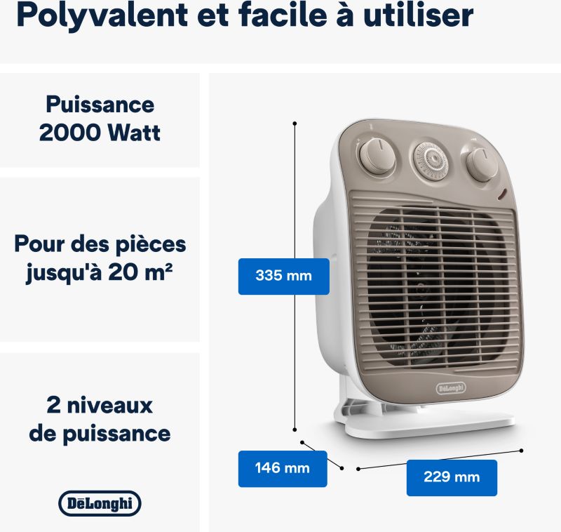 Chauffage soufflant DELONGHI HFS50D22 WH (réf : 1093206)