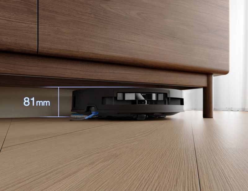 - Serpillère ou rouleau-brosse déportée : le robot est capable de nettoyer plus efficacement les angles et bords des murs en déployant sa serpillière ou son rouleau vers l'extérieur.