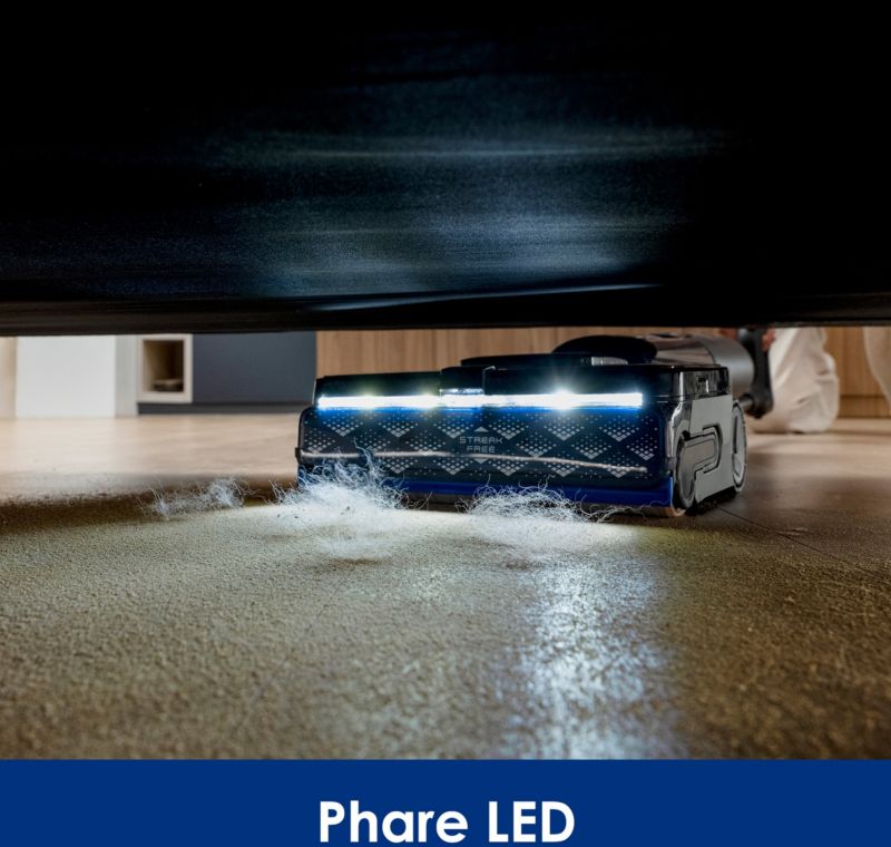 - Eclairage LED du sol : oui, permet de voir la pousière, les poils d'animaux, les taches...