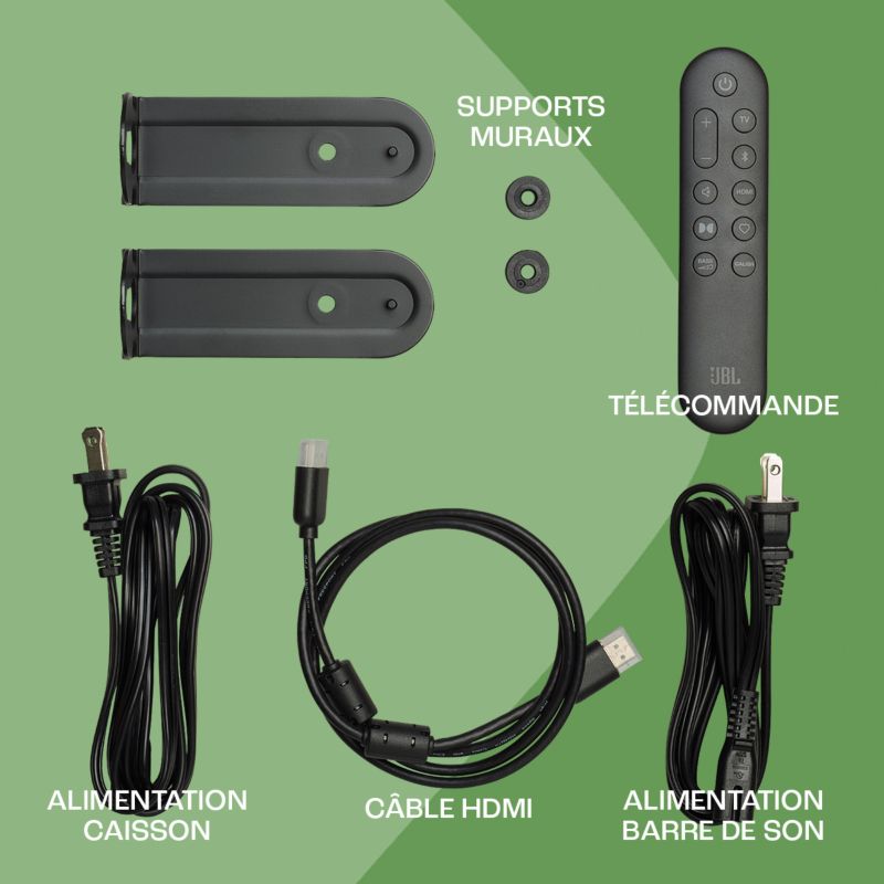 - Typologie : barre de son avec caisson sans fil, sert à améliorer le son de la télé et restituer les sons les plus graves